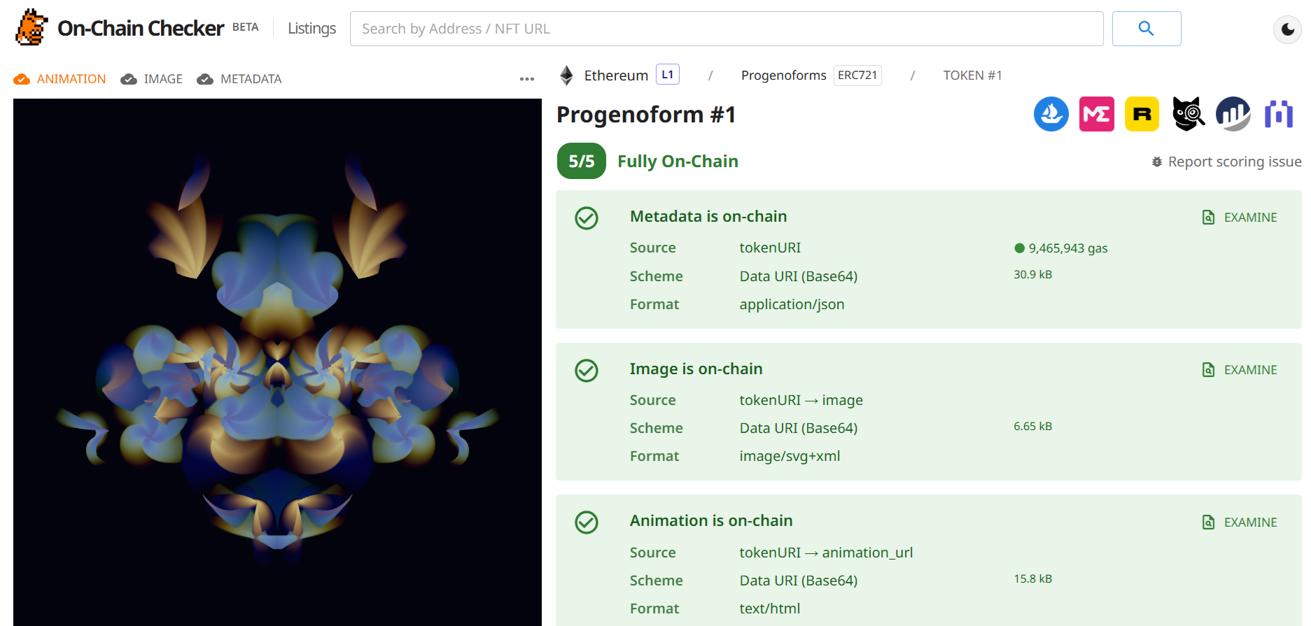 The Mindforms initiative is excited to introduce Progenoforms, a generative art NFT collection created entirely on Ethereum MainNet. Each Progenoform is a one-of-a-kind, fully onchain artifact: its metadata, SVG artwork, and dynamic animation are all generated and stored directly on the Ethereum blockchain with no need for third-party infrastructure, and no two are ever the same.